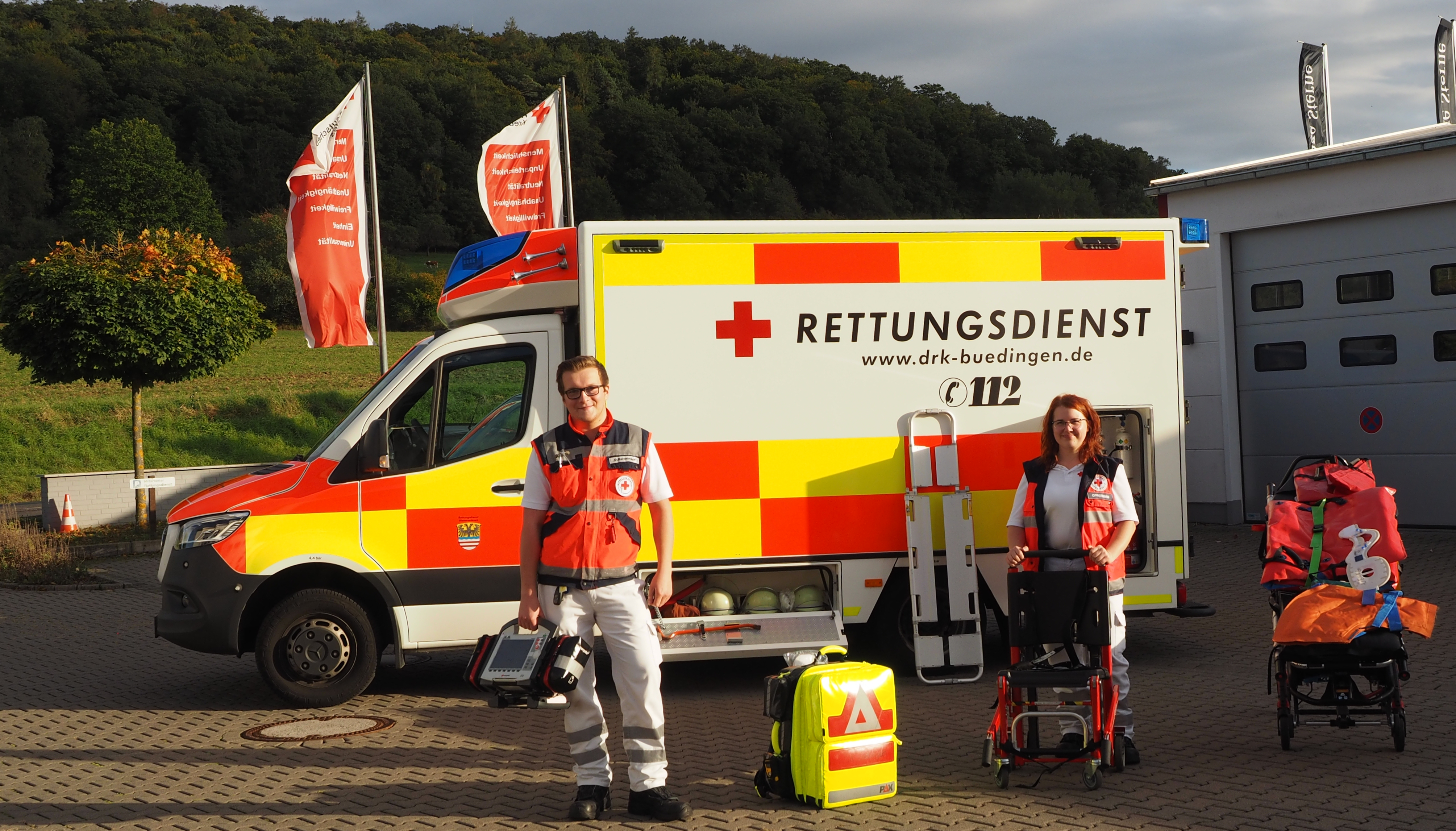 Nachdem er nun seine Ausbildung erfolgreich abgeschlossen hat und seit einem guten Monat als Notfallsanitäter beim Roten Kreuz in Büdingen arbeitet, wollen wir wissen, was er seiner Kollegin als Ratschlag für die Ausbildung auf den Weg gibt. Er wendet sich ihr zu und sagt: „Nimm jeden einzelnen Tipp, jeden Rat von den Kollegen an, vor allem von den langjährigen. Das wird dir im Berufsalltag sehr helfen. Und einen zweiten Rat habe ich auch: Im zweiten Ausbildungsjahr gibt es ein Tief. Da raucht der Kopf, weil so viel zu lernen ist. Du musst am Ball bleiben. Das geht vorbei.“