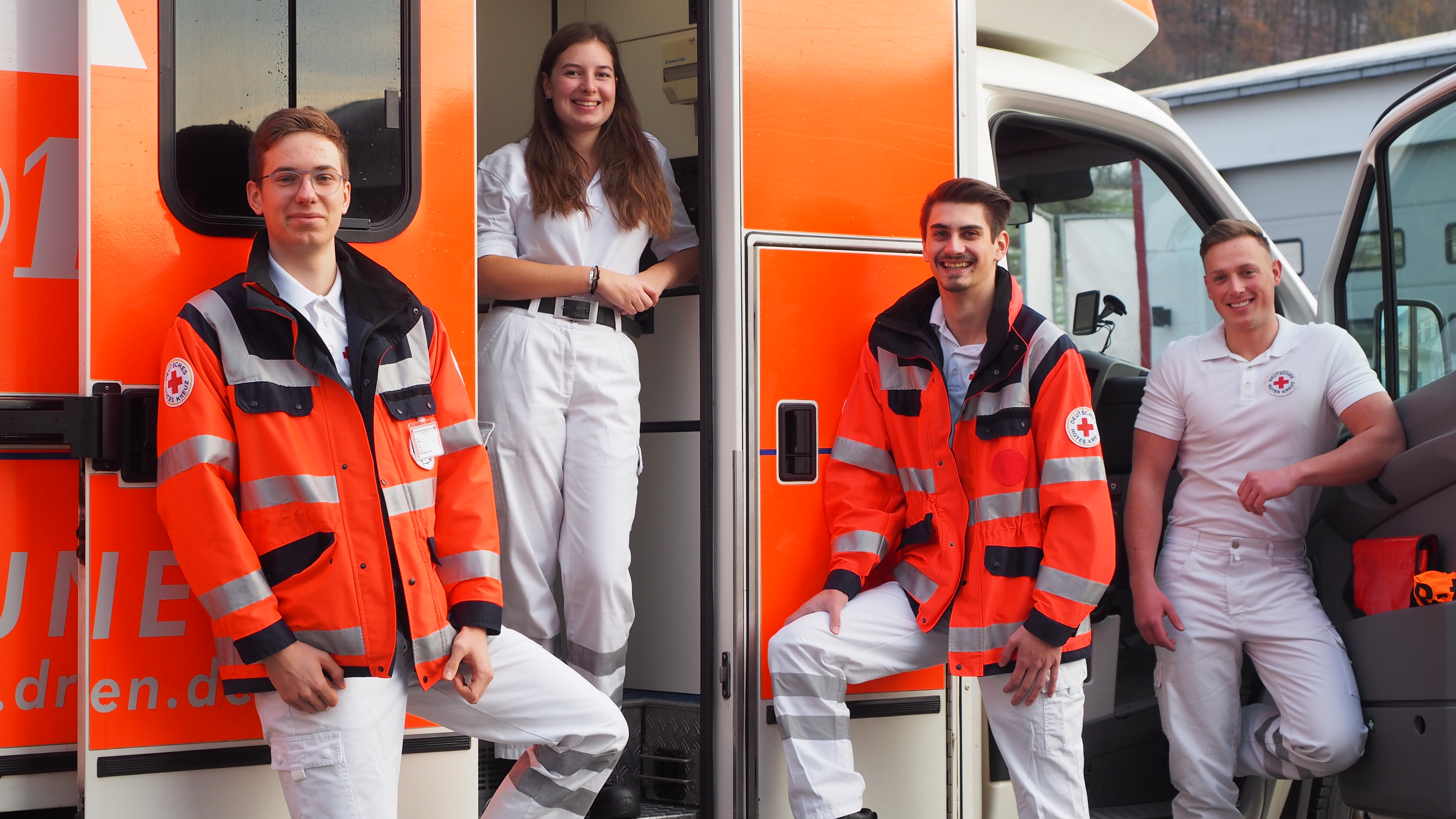 Was tun nach dem Abi? Reisen? Studium? Ein Praktikum? Chillen? Oder nach all der Lernerei erst mal was Handfestes? Abgesehen davon, dass es für Schulabgänger*innen wegen der Corona-Pandemie schwierig bis unmöglich bleibt, die eine oder andere dieser Ideen umzusetzen, ist der Schritt in den neuen Lebensabschnitt nicht für jede vorgezeichnet. Da kann ein Freiwilliges Soziales Jahr (FSJ) bei der Entscheidungsfindung hilfreich sein. Deshalb wollen wir von jungen Menschen erzählen, die genau das im Rettungsdienst des Roten Kreuzes in Büdingen absolviert beziehungsweise gerade begonnen haben. Während Anton Henes und Leon Lucya am 31. Dezember ihr Freiwilliges Soziales Jahr (FSJ) beim Rettungsdienst des Roten Kreuzes in Büdingen beendet haben, haben Marika Heusohn und Johannes Gerth das ihre am ersten Tag des neuen Jahres angetreten. Eine Staffelstab-Übergabe sozusagen.
