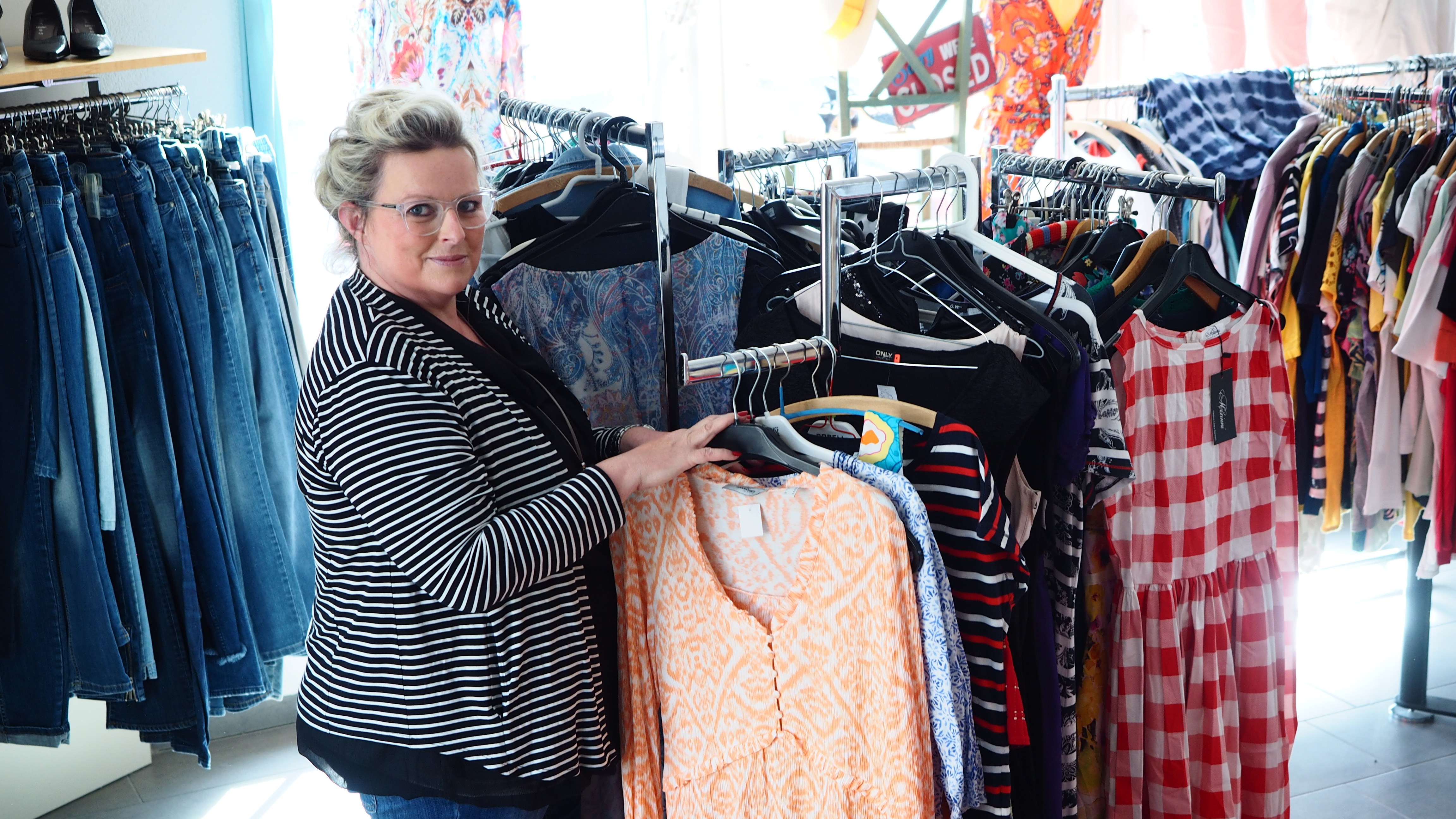 Melanie Christen leitet den DRK Kleiderladen in Nidda (Foto: Elke Kaltenschnee)